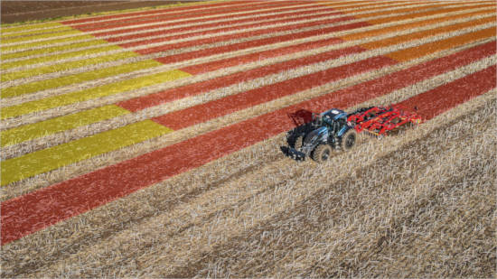 El ensayo se realizó en una parcela de 50 ha con una mezcla de suelos ligeros y pesados. Se probaron cuatro intensidades de labranza con el cultivador Väderstad TopDown 400, operado por un tractor Valtra Q305 con terminal ISOBUS SmartTouch. Gracias al uso de mapas de prescripción, la máquina ajustó automáticamente en tiempo real la intensidad de labranza para adaptarse a las condiciones del terreno en cada zona.