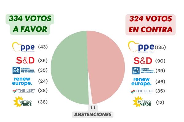 - Patriotas por Europa: 71 a favor, 1 en contra y 7 abstenciones.