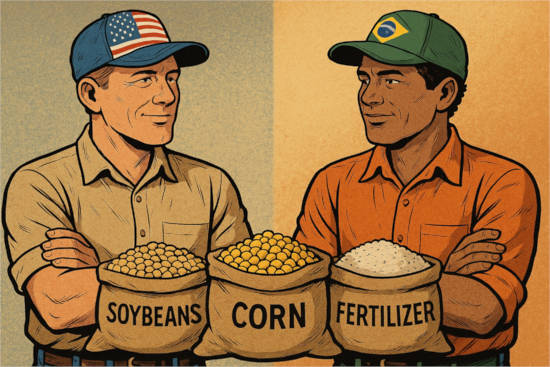 Los datos del USDA y de la Compañía Nacional de Abastecimiento de Brasil (CONAB) muestran que, por tonelada, los agricultores de Estados Unidos pagaron un 10 % y un 45 % menos por fertilizantes de maíz y soja, respectivamente, y entre un 40 % y un 45 % menos por pesticidas que sus homólogos brasileños.