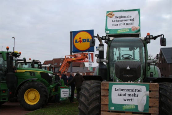 Desde el domingo hay previstas varias concentraciones de tractores delante de tiendas Lidl en diversas localidades alemanas. Han sido convocados por la organización denominada «La agricultura conecta a Alemania».