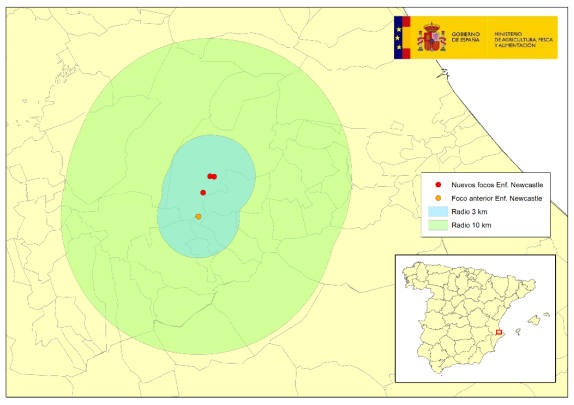 Las autoridades veterinarias de la Generalitat Valenciana han notificado 3 nuevos focos de enfermedad de Newcastle en sendas granjas de pollos de engorde en el municipio Llutxent, comarca de Vall D´Albaida, en la provincia de Valencia. Estos nuevos focos se consideran secundarios al foco primario notificado el pasado 29 de diciembre en la misma localidad, encontrándose los tres situados dentro de la zona de restricción establecida por el primer foco.