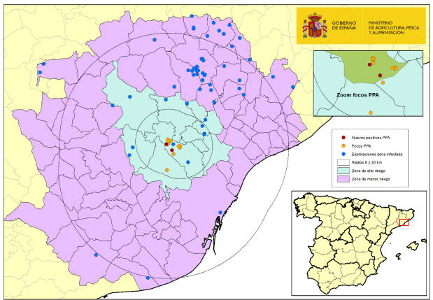 Con éstos ascienden a trece los focos notificados hasta la fecha, 3 de ellos primarios y los otros 10 secundarios, incluyendo un total de 47 animales positivos, lo que representa un 8% del total de animales analizados. Se han analizado otros 530 animales que han resultados negativos, de los cuales 234 han sido capturados en trampas y 296 se han muestreado por vigilancia pasiva (cadáveres enteros o restos hallados en el medio natural o animales con sintomatología abatidos) en la zona infectada de 20 km de radio y sus alrededores.
