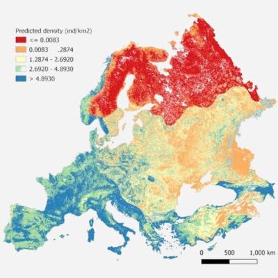 El salto técnico que aborda este trabajo es la falta de comparabilidad entre países: hasta ahora, los datos de abundancia estaban fragmentados por el uso de métodos diferentes de recuento. El objetivo del proyecto ha sido pasar de indicadores relativos (mucho/poco) a densidades estimadas (individuos por km²) en una malla armonizada de 2×2 km, con un nivel de detalle poco habitual para una especie silvestre terrestre a escala continental.